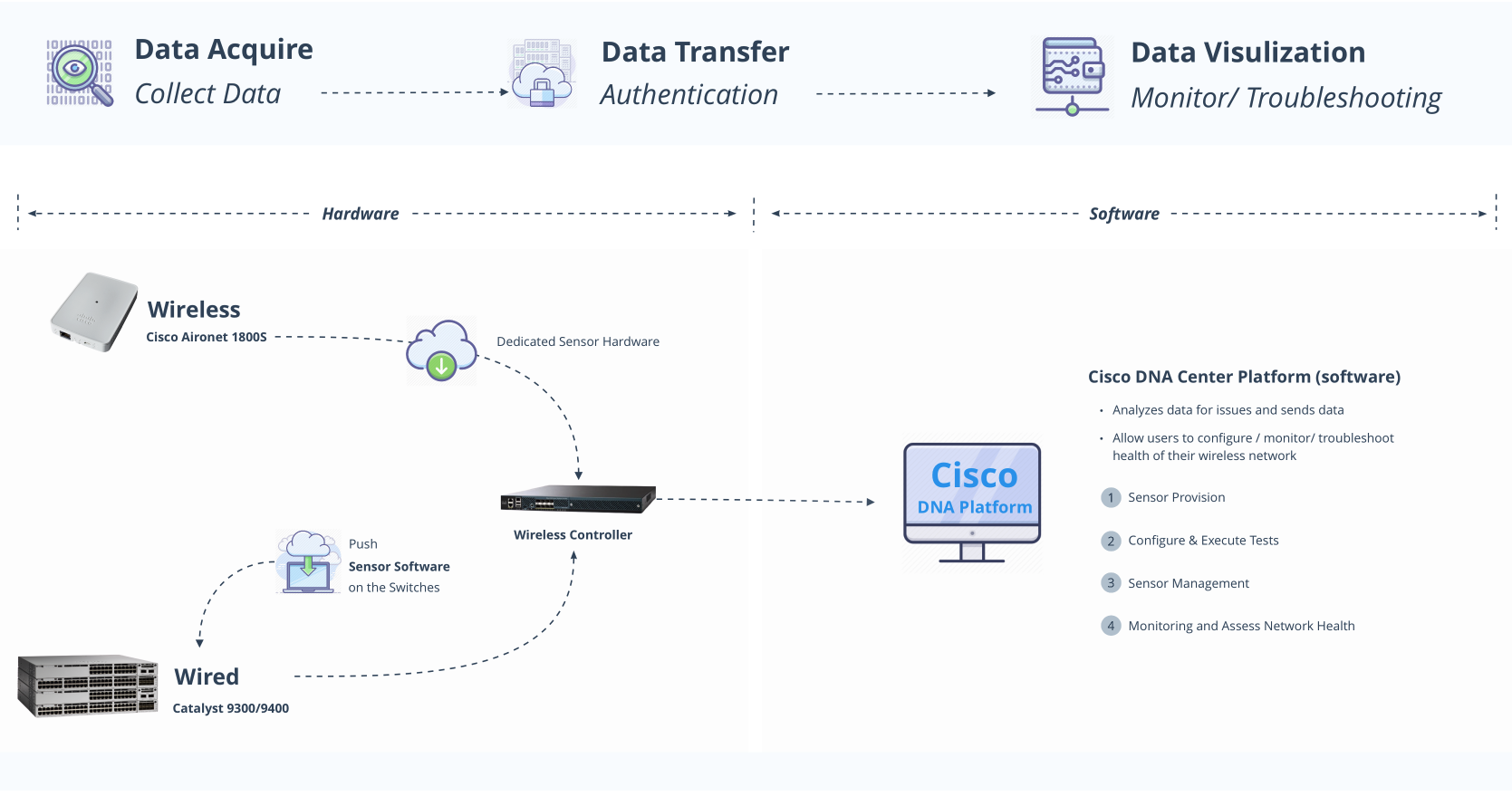 - DNA Platform – Allows Users to configure, monitor, troubleshoot the health of their network performance