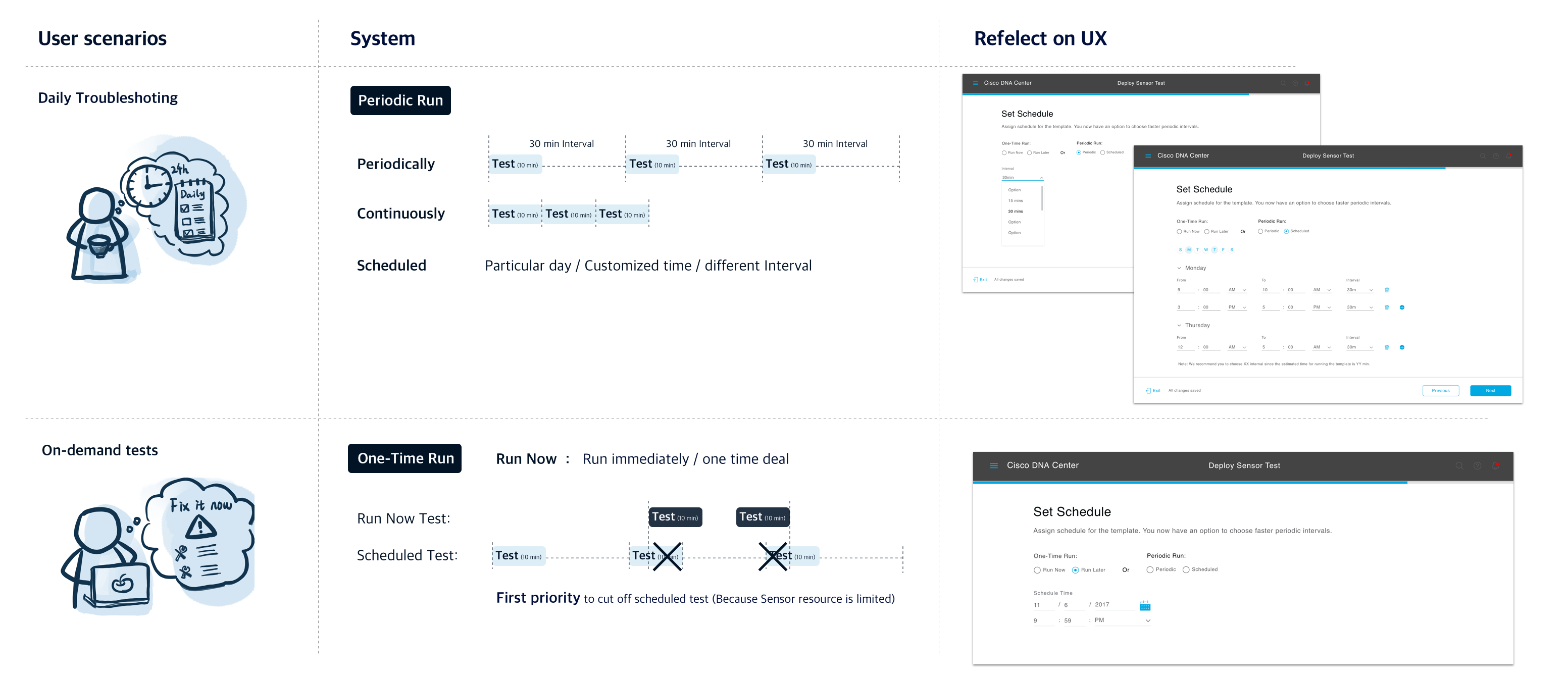 As for the scheduling step, I found that users’ expectations and interpretation didn’t match mechanism we provided. Users are hard to make choices between multiple options (Such as “test interval” and “run now”. )