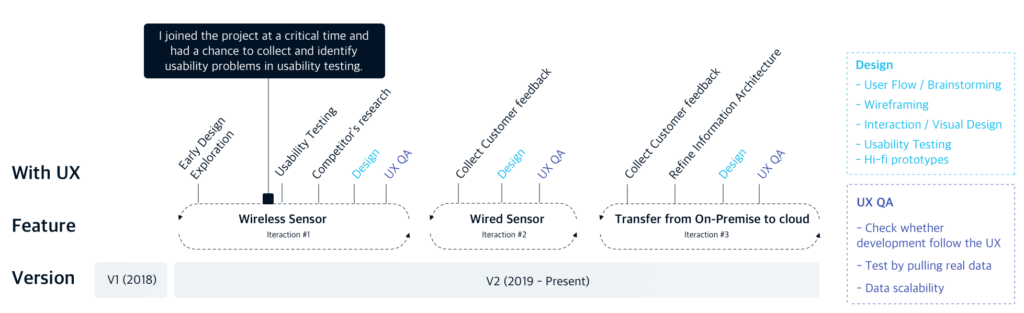 I worked with researchers to run usability testing to evaluate and gather feedback on new designs for sensor workflow and dashboard.
