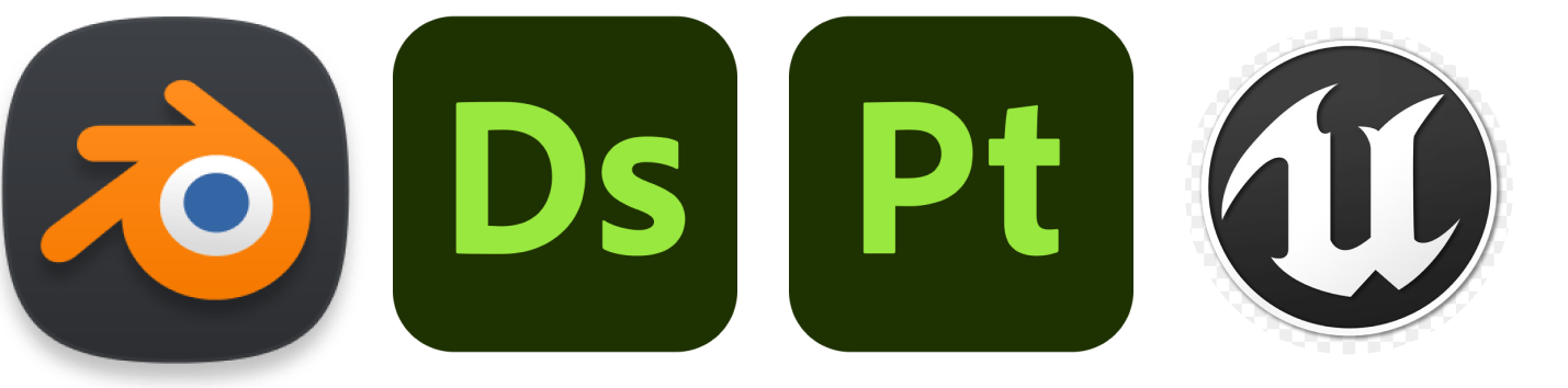 For 3D models, I purchased assets from CGTrader with a royalty-free license. These models were UV-mapped, and I made necessary adjustments using Blender.