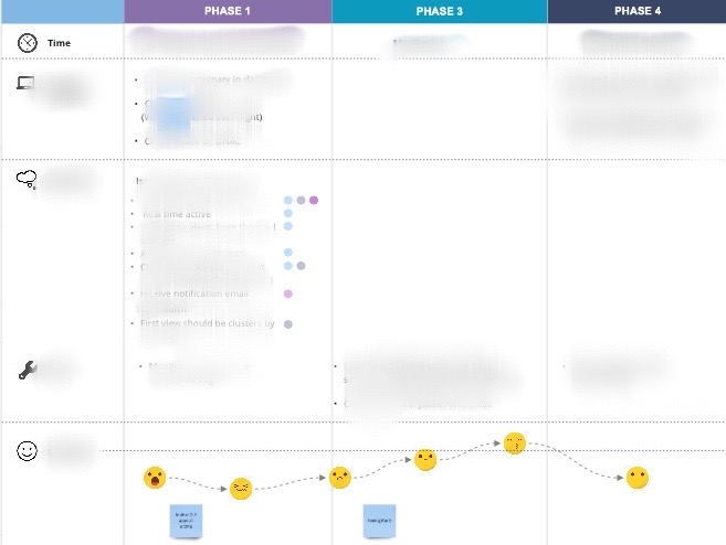 The purpose of the map is to understand and improve the quality of the whole iterative experience. It provides an overall view of the entire journey, the stakeholder can understand what kind of service we need to provide in each stage of the product. It helps to reveal the gaps between users’ actual feelings and current product strategy.