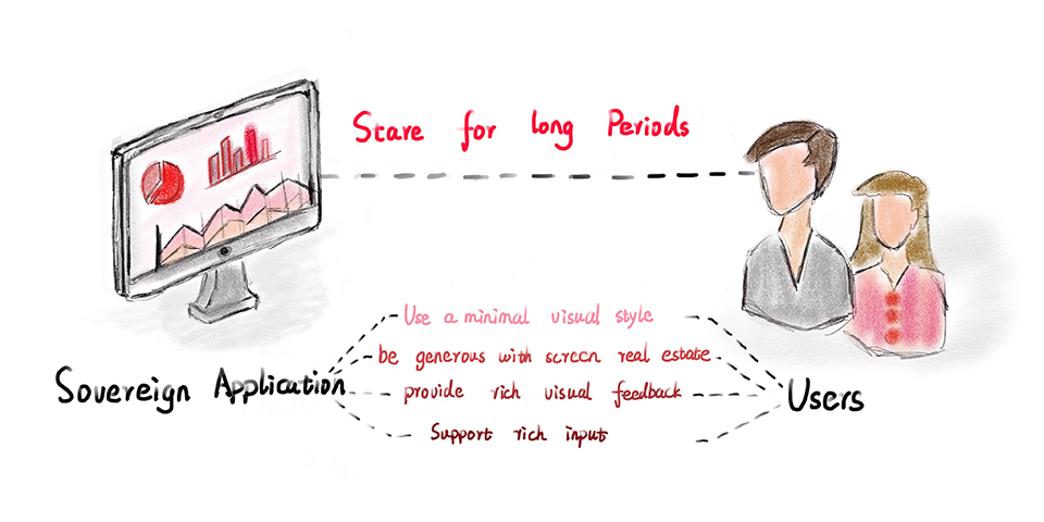 “Applications that monopolize users’ attention for long, continuous periods of time are called sovereign-posture applications. Sovereign application offer a large set of related functions and features, and users tend to keep them up and running continuously, occupying the full screen.“